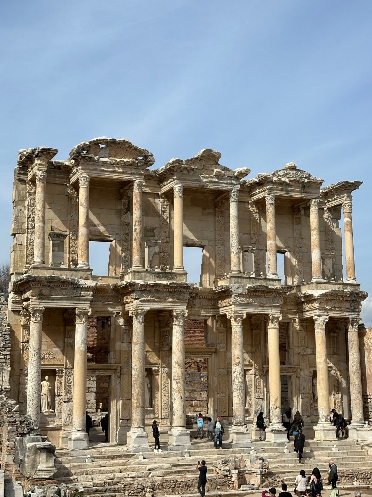 Ephesus is known for many remarkable structures, but the standout is the Library of Celsus. As we strolled through the well-preserved streets, we marveled at the impressive homes and public spaces, admiring their architecture.