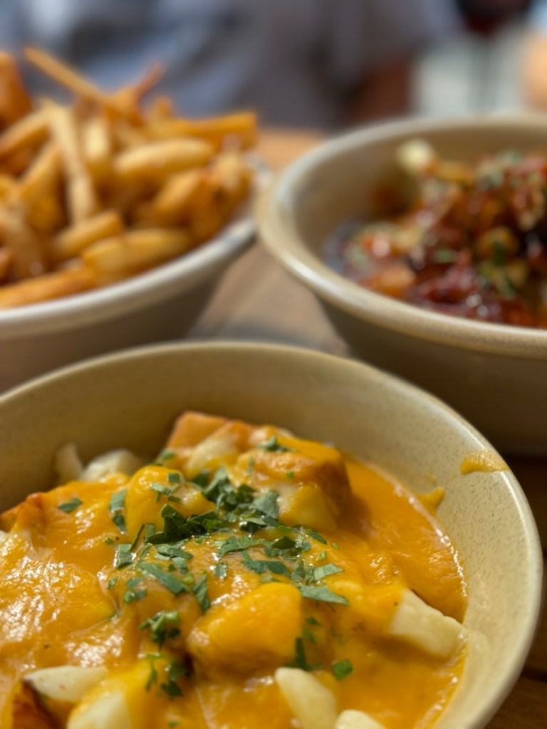 Food was a highlight of our trip. On our first day, we dove into Quebec’s signature dish: poutine at Le Chic Shack. As I don’t eat beef or pork, I’ve never been able to try it. Le Chic Shack had vegan gravy. If you’ve never had poutine it’s a rich and comforting mix of crispy potatoes topped with fresh cheese curds smothered in gravy. We treated ourselves to ice cream from Cows. This spot is known for its creamy texture and fun, unique flavors. Mary’s Popcorn was a perfect snack, the maple pecan was excellent! We even tried maple water which was surprisingly good!