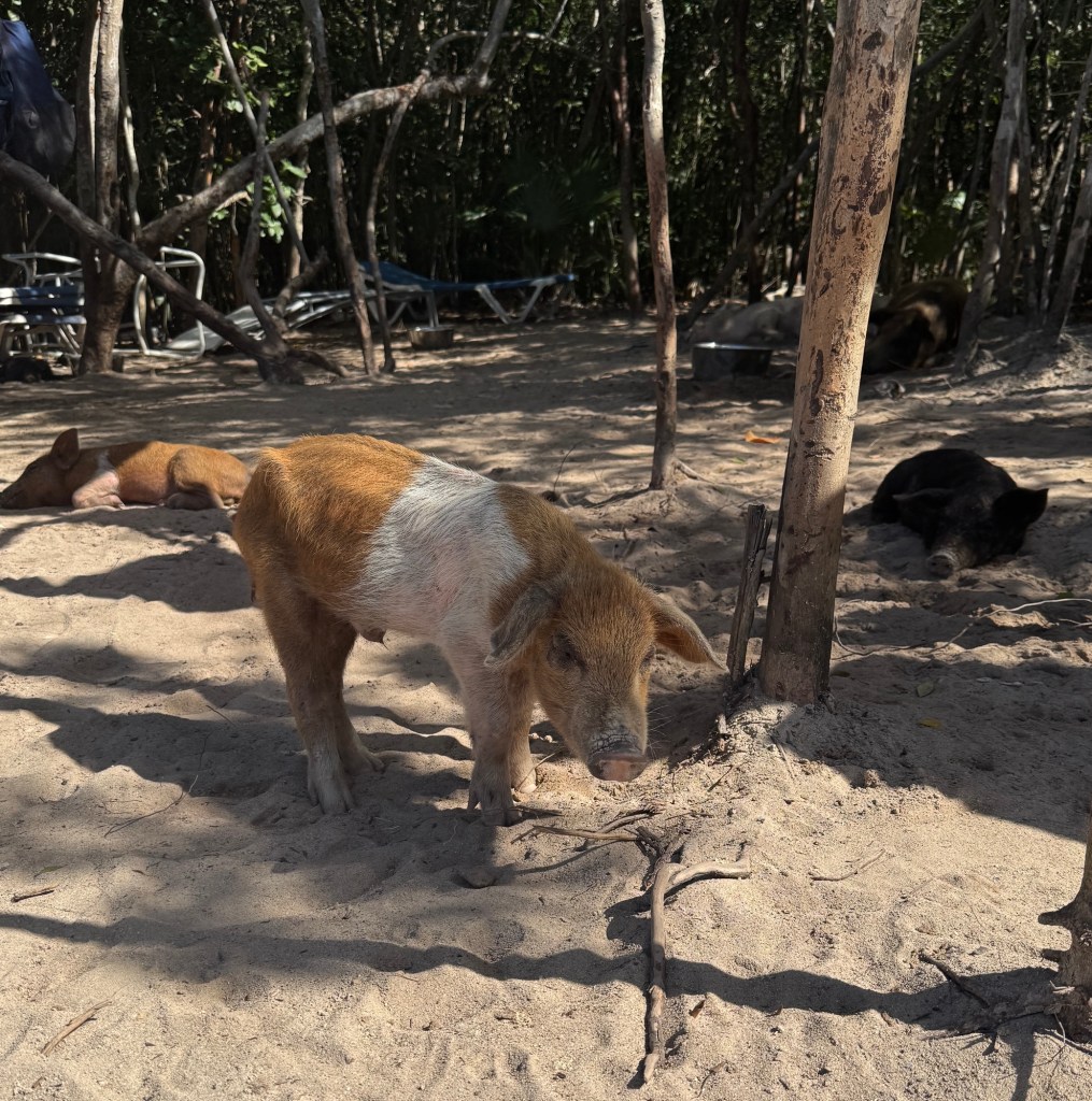 The boat trip to Pig Beach was another adventure. Instead of a speedboat, we ended up on a floating tiki bar, which—while cute—was totally impractical. A 30-minute ride turned into a two-hour journey thanks to choppy waves and an underpowered 4 stroke motor. The pigs were adorable, but the beach on Athol Island was rocky and unkempt. The experience was further tainted by the music blaring from the speakers of the children running the show.